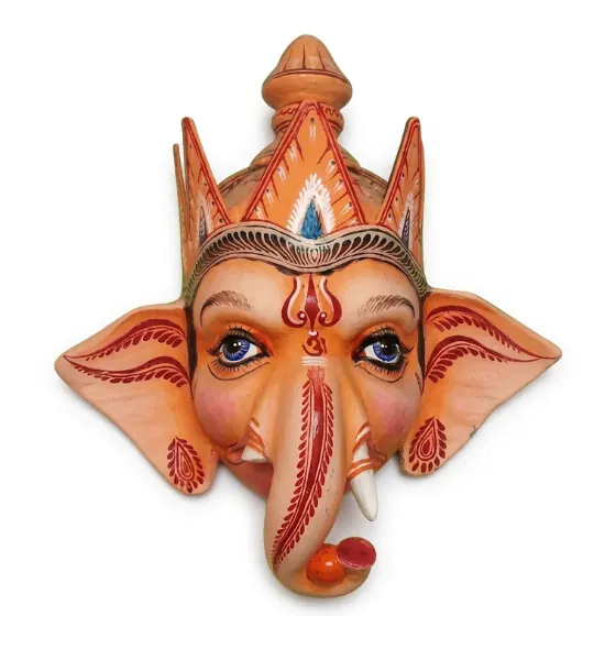 - Distinctive elephant features: The mask emphasizes Ganesha’s long trunk, wide ears, and expressive eyes, symbolizing wisdom, strength, and compassion.