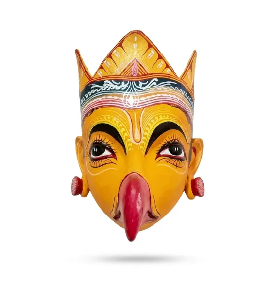 The Garuda Mukha Traditional Mask is a beautiful example of the centuries-old mask-making tradition practiced in Majuli, the world’s largest river island and a center of Assamese culture. This mask represents Garuda, the divine eagle and vehicle of Lord Vishnu, symbolizing strength, protection, and devotion in Hindu mythology.