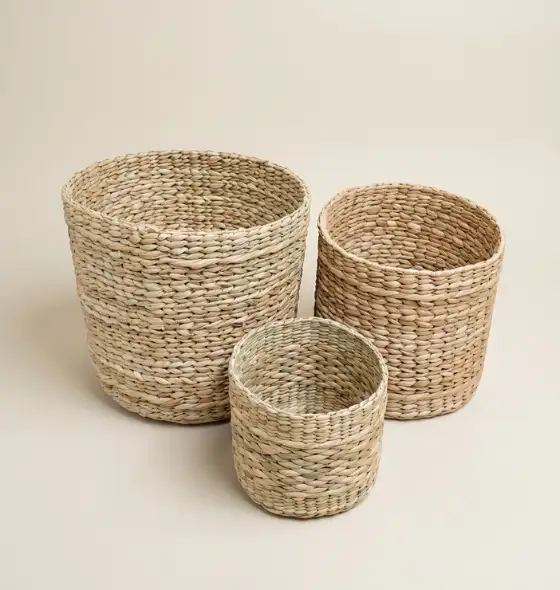 With its sturdy cylindrical design and earthy texture, the Kouna Planter is perfect for displaying indoor plants, flowers, or small decorative arrangements. Its natural woven pattern brings warmth and a rustic aesthetic to any space, making it an ideal addition to living rooms, balconies, offices, or garden areas.